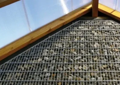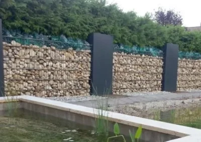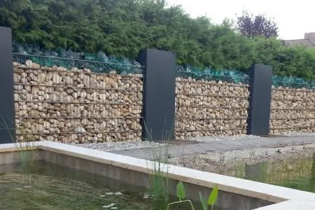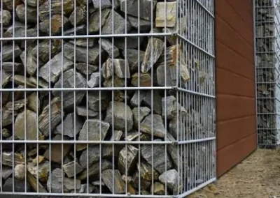 Sama konstrukcja gabionów jest bardzo prosta – najczęściej wykonuje się je ze stosunkowo tanich materiałów (ich cena rośnie raczej w zależności od metod zabezpieczenia ogrodzeń, a nie samego materiału podstawowego). Funkcjonalność można rozbudować poprzez zastosowanie odmiennych łączników i obejm słupków – dzięki nim można zamocować w ogrodzeniu furtkę, stworzyć ogrodzenie o bardziej skomplikowanym kształcie lub dodatkowo usztywnić całą konstrukcję. Gabiony, mimo dużej stabilności, są mniej sztywnym wariantem niż typowe ogrodzenia murowane – elastyczny jest sam gabion, a materiał wewnątrz zwykle może nieco zmieniać położenie, więc w niektórych projektach stosuje się takie rozwiązania jako bezpieczniejsze i odporniejsze na uszkodzenia mechaniczne powstałe np. w wyniku przypadkowego najechania pojazdu lub uderzenia przez spadające gałęzie. Gabiony – ze względu na ograniczenie niemal do zera (poza punktami mocowania do podłoża – chemii budowlanej, są bardzo odporne na działanie szkodliwych czynników atmosferycznych.